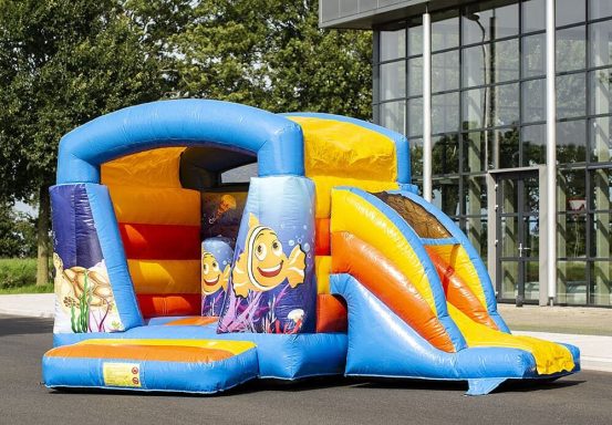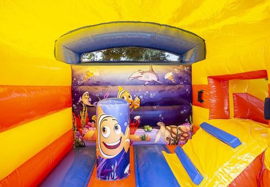 Diese fröhliche und kompakte Hüpfburg "Korallenheini" ist ideal für kleinere Kids geeignet. Dank der eingenetzten Sprungfläche in Kombination mit der eingenetzten Rundrutsche sind die Kids optimal gesichert und werden viel Spaß am Springen und Rutschen haben!